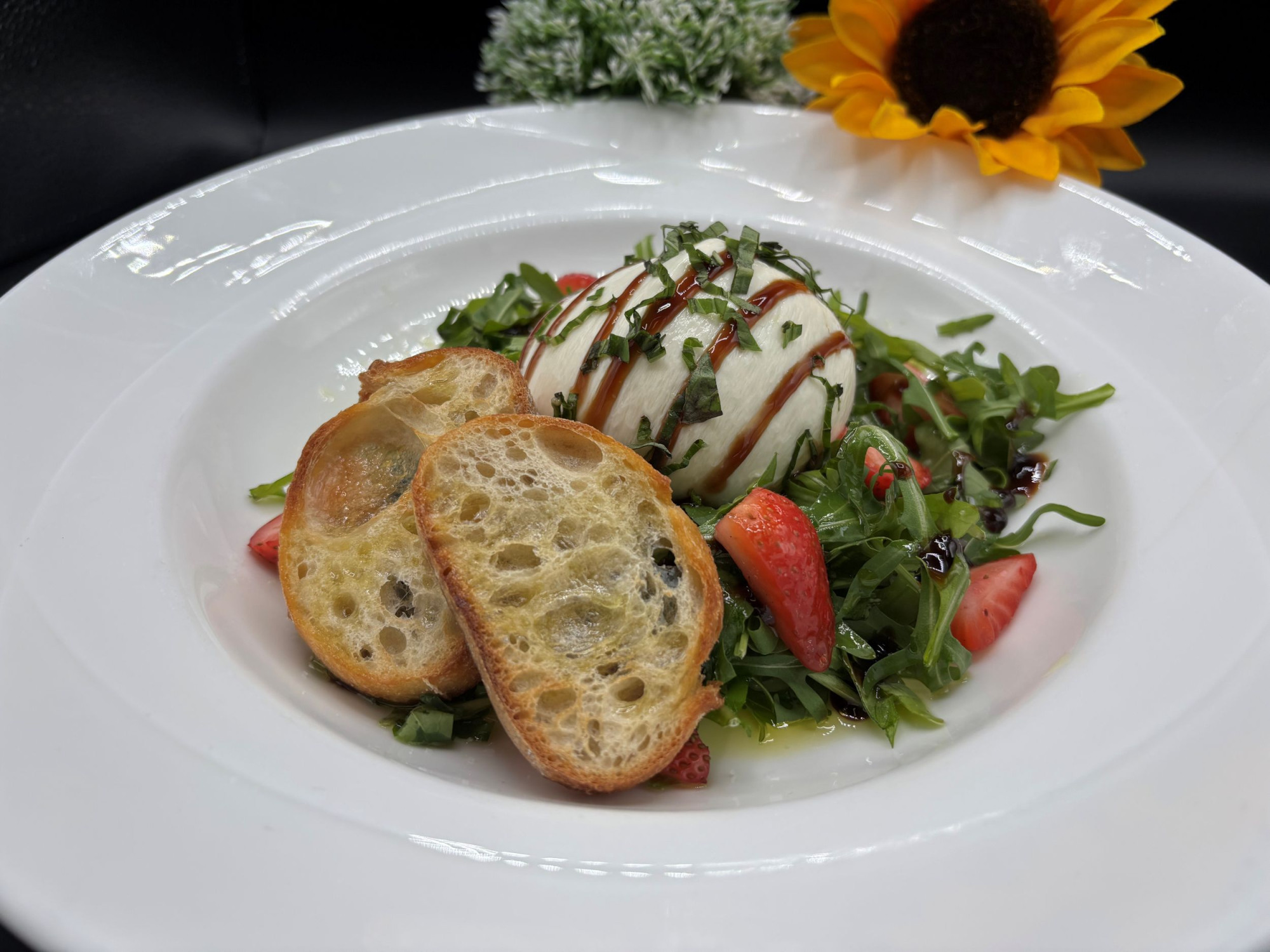 Baby Greens | Parmesan Crisp | Pancetta | Crostini | 10-Minute Boiled Egg | Spicy Sesame-Sriracha Caesar Dressing